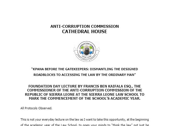 Commissioner Francis Ben Kaifala address on the IAC DAY Public Lecture